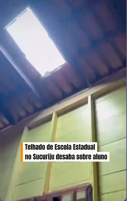 De acordo com relatos de moradores, parte da estrutura do telhado da escola cedeu repentinamente e acabou caindo sobre um estudante que estava no local. O aluno ficou ferido após ser atingido pelos destroços, causando grande preocupação entre a comunidade escolar.